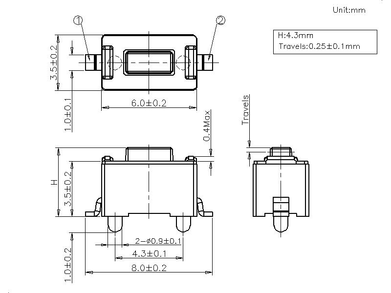 - 商品名稱(chēng): 鴻源 3*6 輕觸開(kāi)關(guān)貼片帶柱 4.3