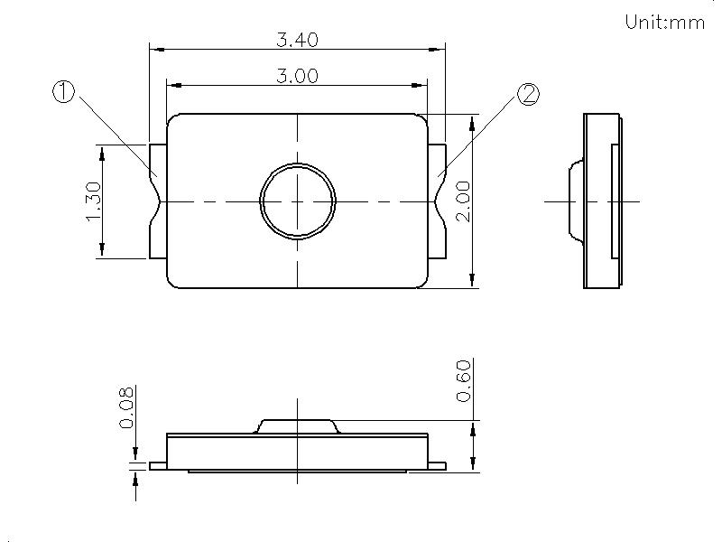 4、產(chǎn)品外形尺寸3.0mm×2.0mmx0.6mm,符合業(yè)界超薄超小型特色,同時具有l(wèi)aser特點 。